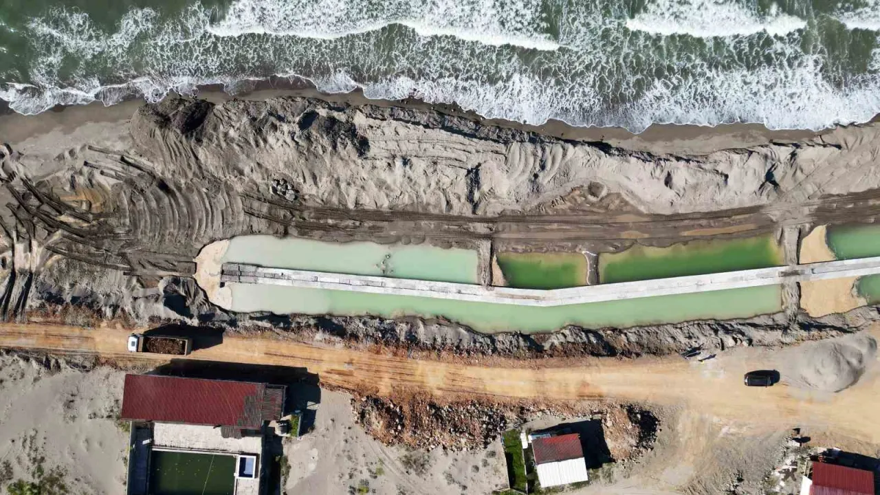Sakarya’nın Karasu ilçesinde deniz dalgalarının yol açtığı kıyı erozyonunu önlemek amacıyla sahil koruma duvarı projesi hayata geçirildi. Erozyon nedeniyle yapıların zarar gördüğü bölgede başlatılan çalışma ile sahilin koruma altına alınması hedefleniyor.